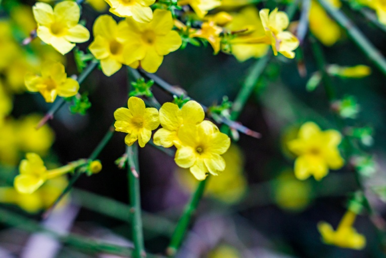 路边的蜡梅还在枝头缀着,嫩黄的花瓣裹着淡淡的香;迎春早已抽芽,一串串小黄花垂在枝条;连翘开得更泼辣,满枝金黄晃得人眼亮;就连田埂边的油菜花,也悄悄铺起了金色地毯——放眼望去,早春的花,几乎被黄色“承包”了。